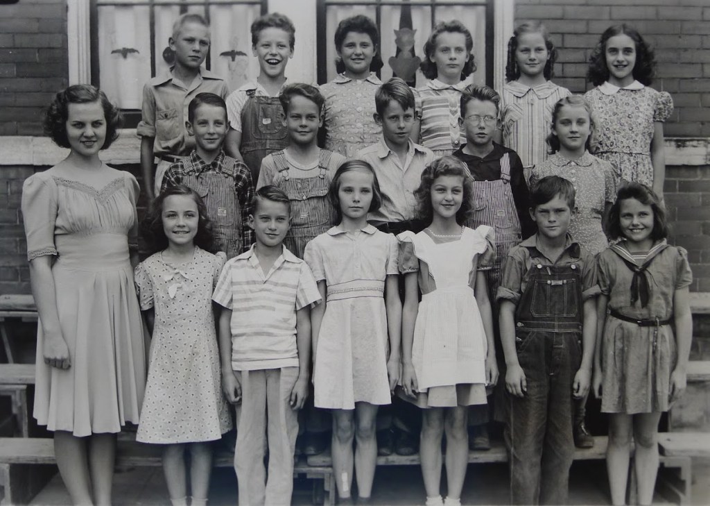 1941 — Dorothy with her students, grades 2-8 — one-room school south of Jetmore