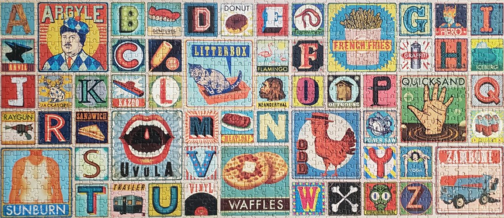 I’m still jigsaw-puzzling quite a bit, making quick progress on some, but the one of the fancy cabin in the woods almost did me in, and somehow I ended up with three missing pieces and one extra piece that didn’t fit in any of the spaces. (So sorry, Ginny — it was one I borrowed from you, and I don’t know why you would want it back now.) On the other hand, the ones with multiple panels with distinct images are easy, and get put together almost too quickly. The one with the hot-air balloons was great fun: colors blending into other colors, only a few distinct images. (All pieces present and accounted for, Ginny — ready to return!)