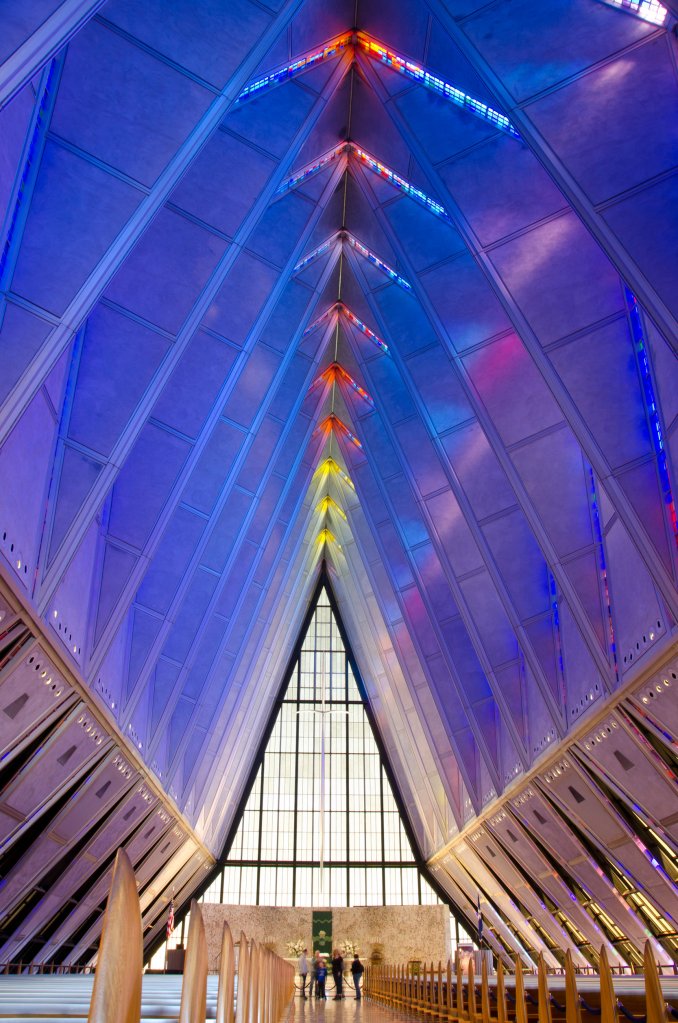 The Air Force Academy Chapel makes a unique mark on the landscape in Colorado Springs, Colorado.