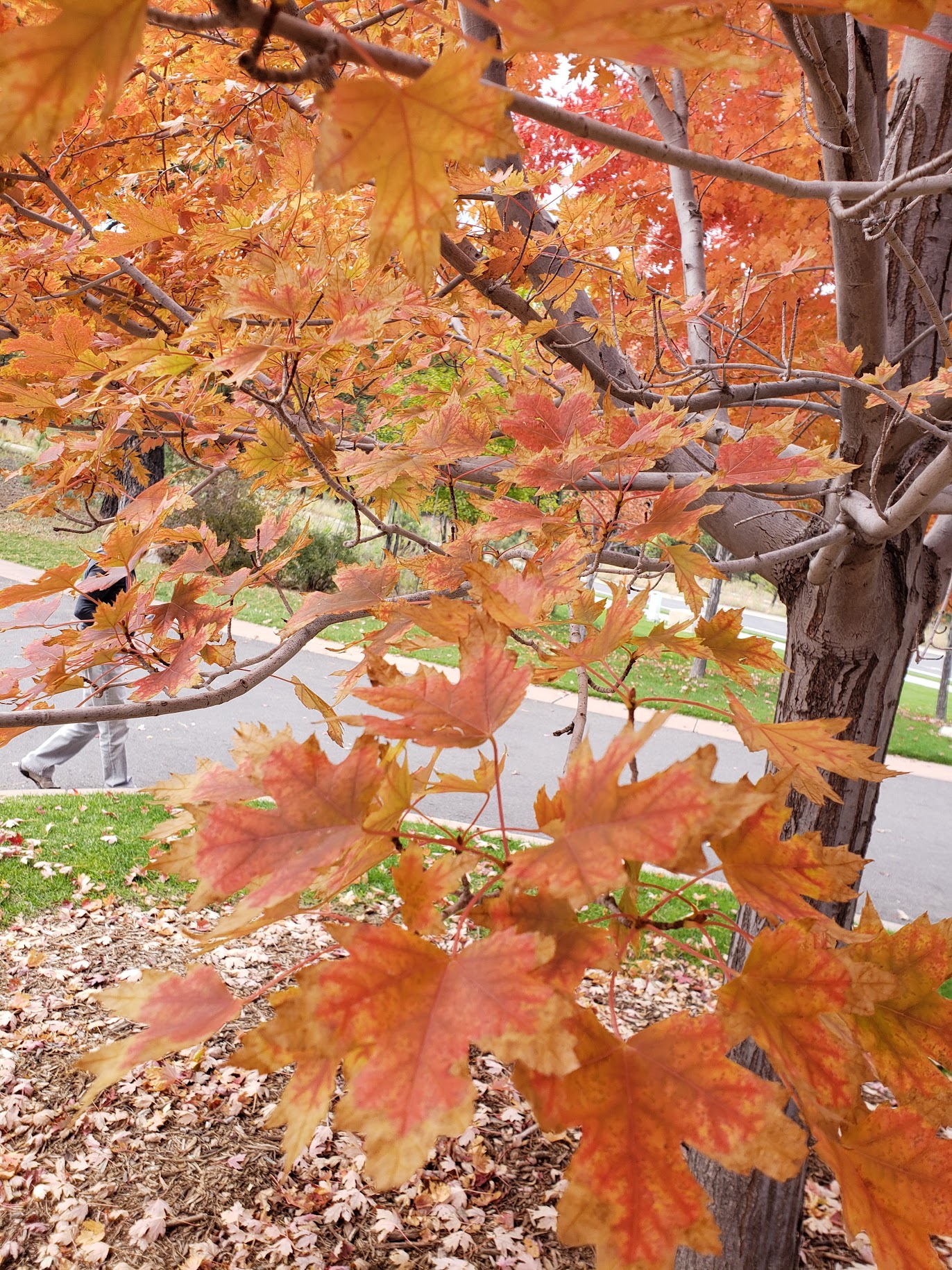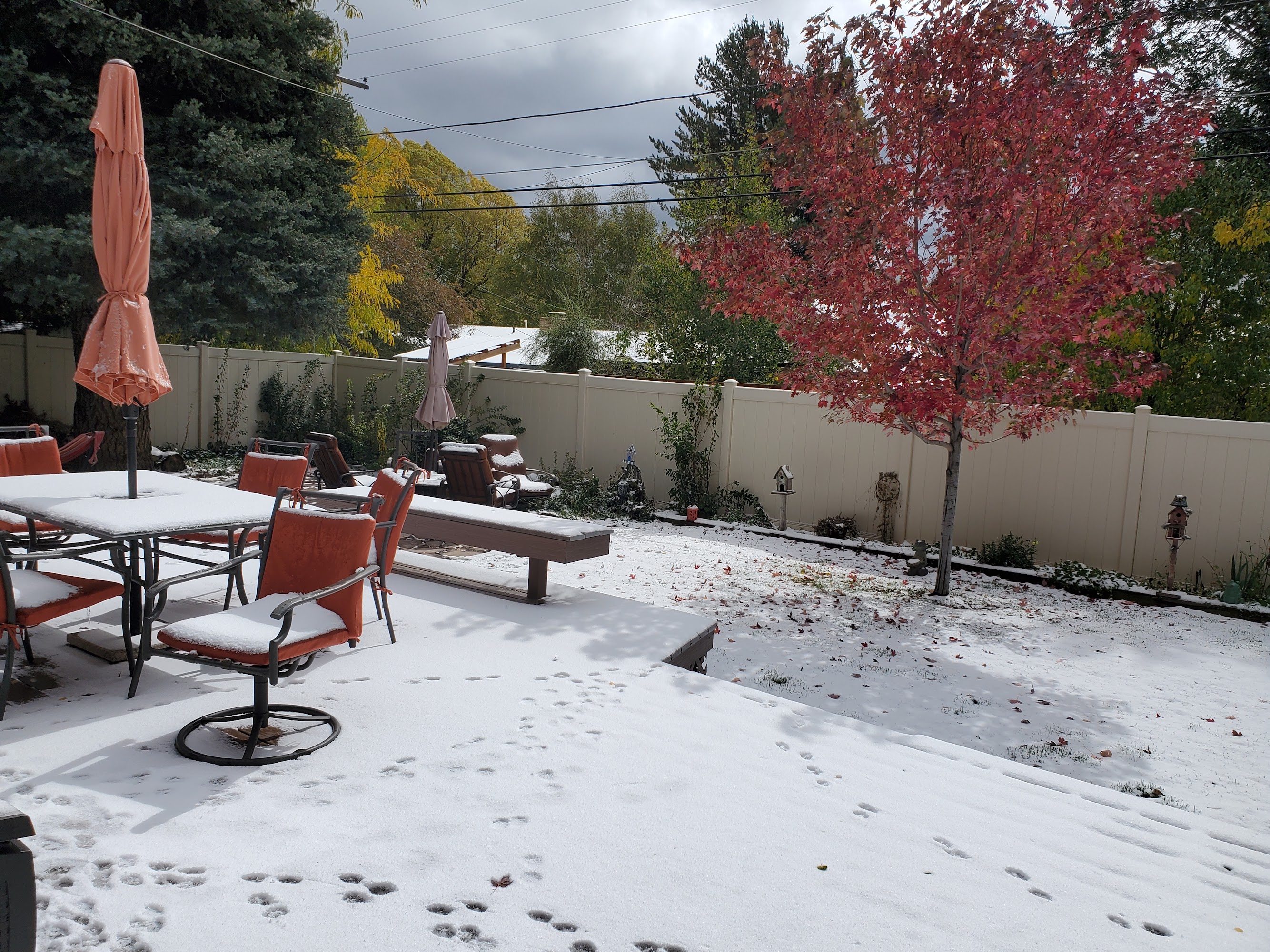 Richard and I, for the very first time, are taking a full month’s vacation from Phoenix. Many folks who live in Phoenix (and can afford it) do this, but they usually spend a month or two of the blistering summer in a cooler place, often on the California coast. So why are we here in Flagstaff, AZ just when the temperatures in Phoenix were finally starting to be livable? Because my natural habitat is the mountains, and I miss being in a true autumn. Richard generally accedes to my wishes as long as there is a place to play golf, every day if possible. I love the crispness of mountain air, the brilliantly colored leaves, and being surrounded by pine trees. And last night, it snowed!