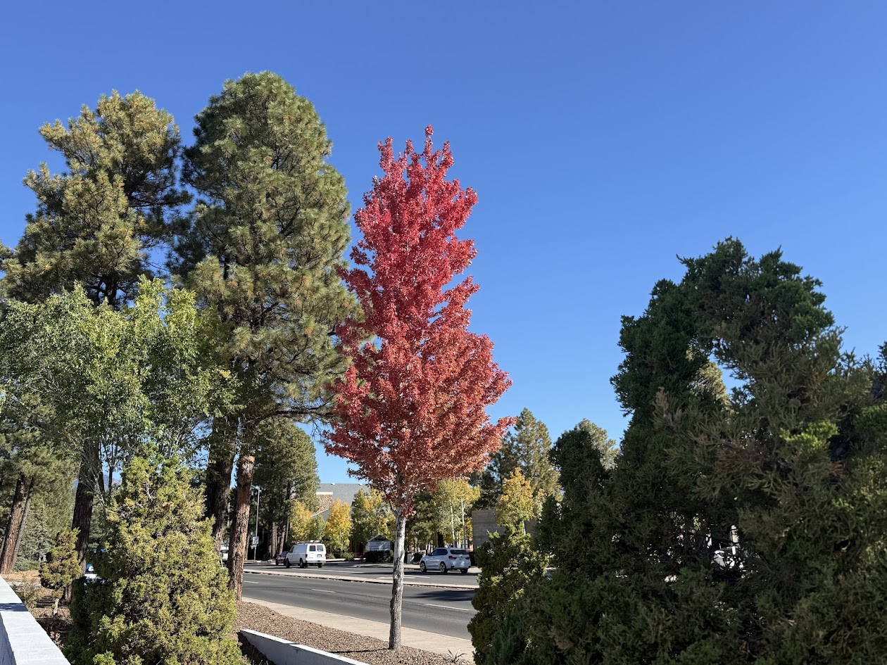 This is especially for my Phoenix friends, who don’t see much change as autumn comes on. In case you aren’t aware, though, the two huge trees in front of Temple Beth El, around 12th Avenue and Glendale on the north side, turn wonderfully red and orange, usually not until mid-November. And then only for what seems like a few days. Easy to miss.