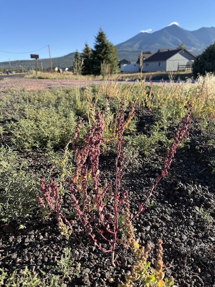 Lamb’s quarters in July with some tarragon behind, and in September, turning red: