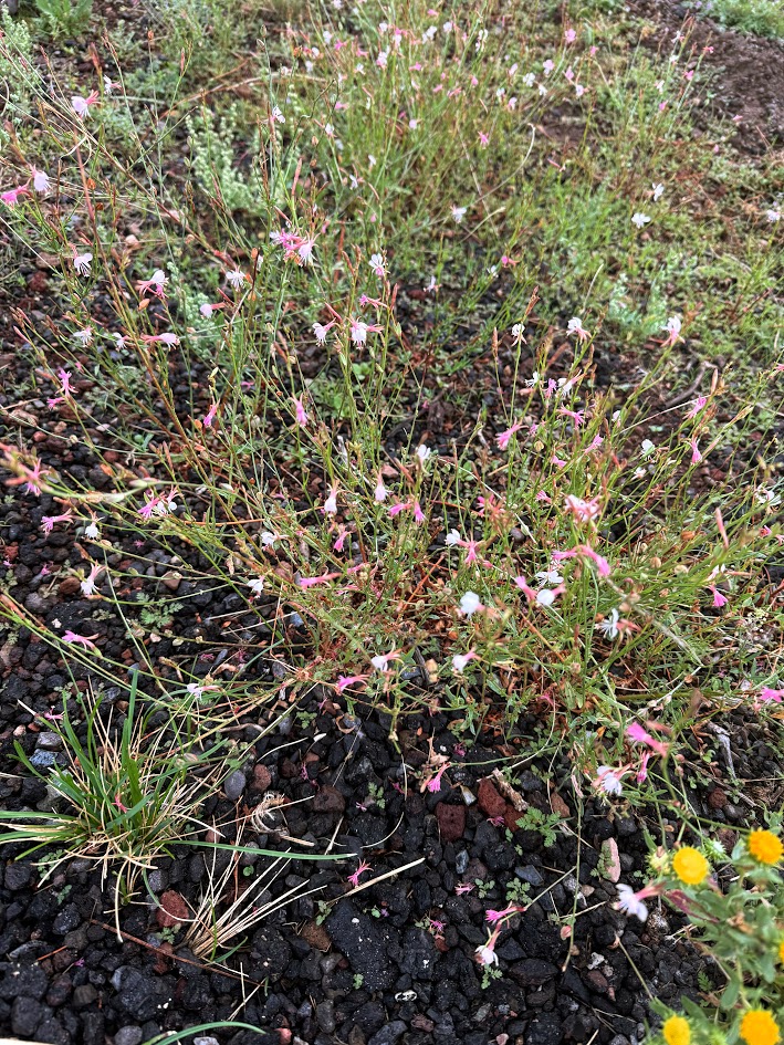 Lindheimer’s bee blossom, with a few curlycup gumweeds in the corner: