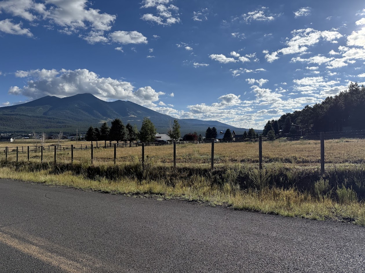 When we set out on our walk, we are heading south, away from the San Francisco Peaks towards a small, double-mounded mountain called A-1.