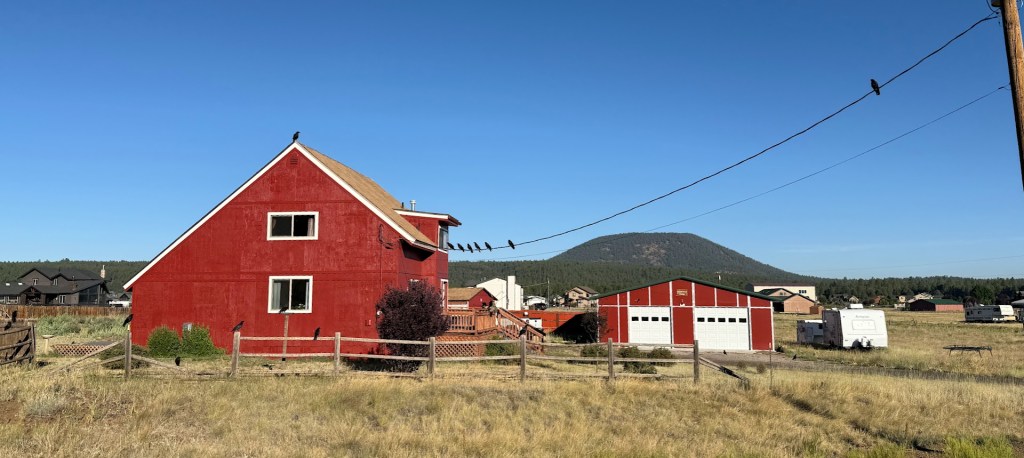 When we were looking for a house in Flagstaff, Richard’s first priority was to be near a golf course. Mine was to have immediate access to fun places to walk, possibly with a coffee shop as a destination. Neither of us got our wish. Our house is seven miles from Flagstaff on Highway 180, the road that leads to the south entrance of the Grand Canyon, which is about 70 miles away. Our house is northwest of Flagstaff; the golf courses are about a half hour away. A walk to a coffee shop would entail walking on the shoulder of Highway 180 for about seven miles, generally downhill — but then, I would need to get back home as well.